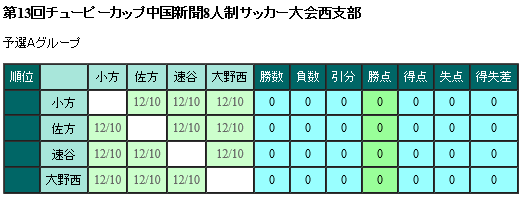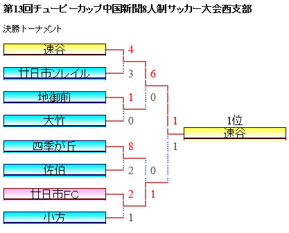 <2015年度の結果> 優 勝:廿日市FC 準優勝:佐方 第3位:四季が丘 大竹その他の結果はコチラ★<2014年度の結果> <2014年度の結果> 優 勝:廿日市FC準優勝:速谷 第3位:四季が丘 小方その他の結果はコチラ★その他の結果はコチラ★