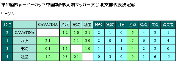 1位:八次SSS 2位:CAVATINA 3位:東城4位:酒屋