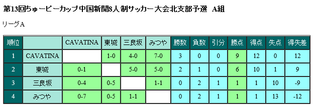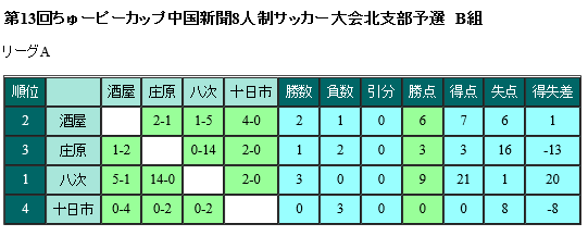 チビリンピックの地区予選。5年生大会。 参加チーム8チームを2ブロックに分けて予選リーグを戦い、上位2チームが代表決定戦に進む。 代表決定戦、上位チームが県大会に出場できる。