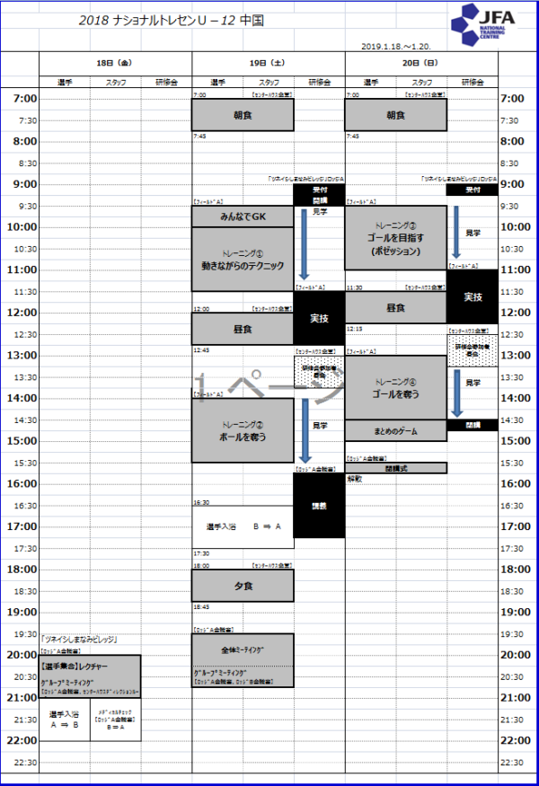 JFAナショナルトレセンコーチと中国トレセン指導スタッフが指導を行う。