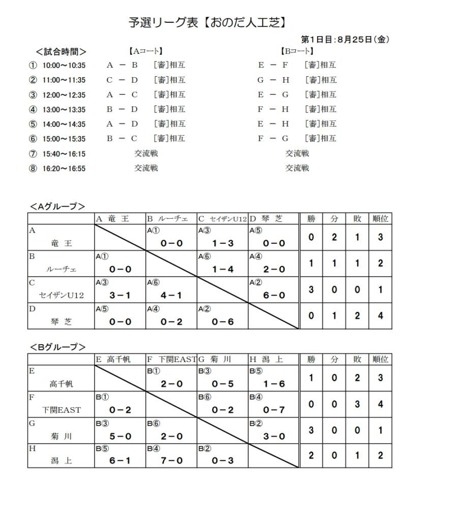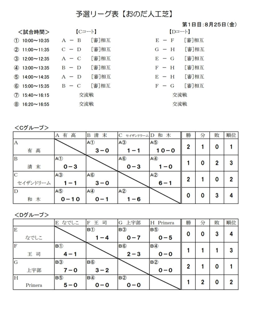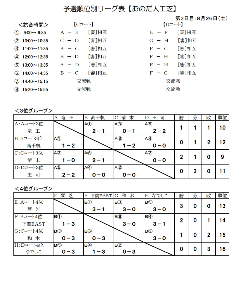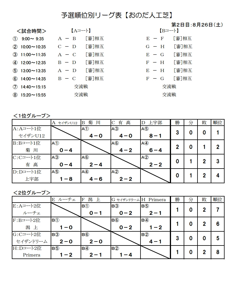 予選順位別リーグ表【おのだ人工芝】<1位グループ><2位グループ>組合せ(PDF)