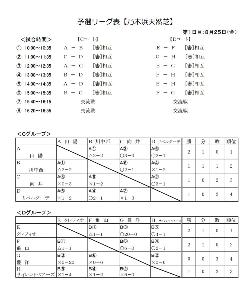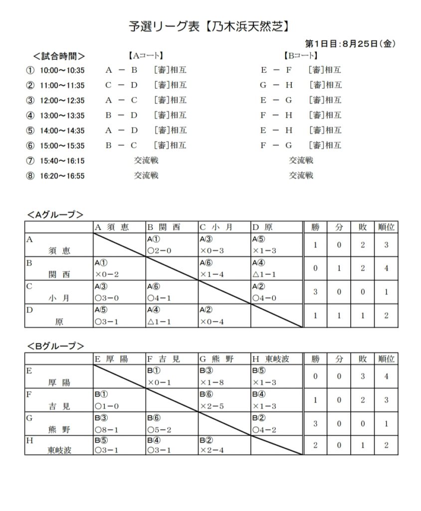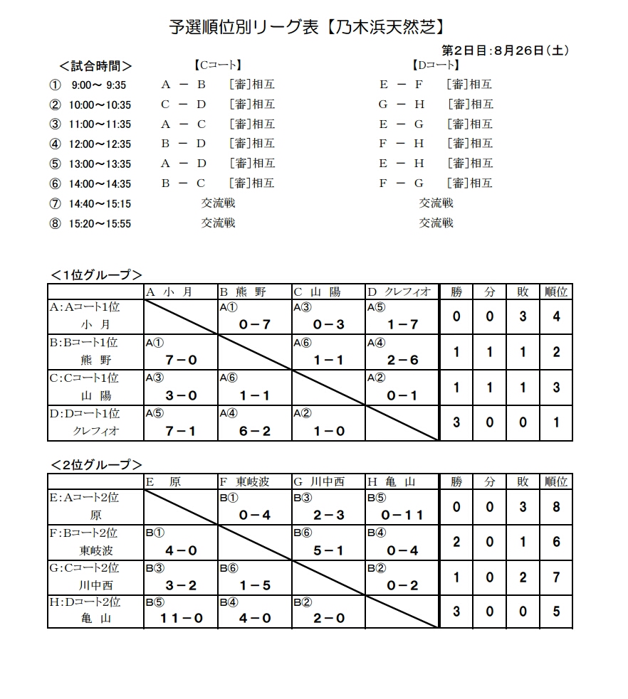 予選順位別リーグ表【乃木浜天然芝】<1位グループ><2位グループ>組合せ(PDF)