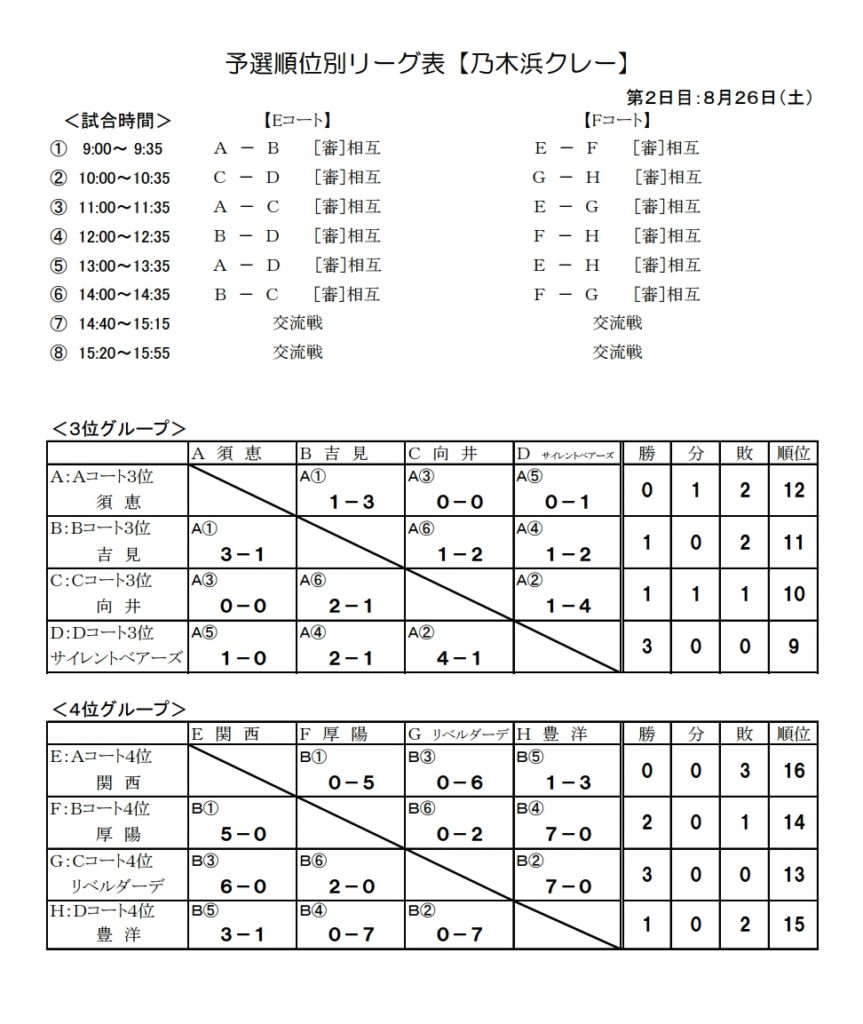 予選順位別リーグ表【乃木浜クレー】<3位グループ><4位グループ>組合せ(PDF)