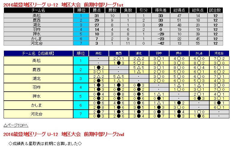 能登地区各地(前期:北部/中部/南部)(後期チャレンジ:トップ/セカンド/サード)