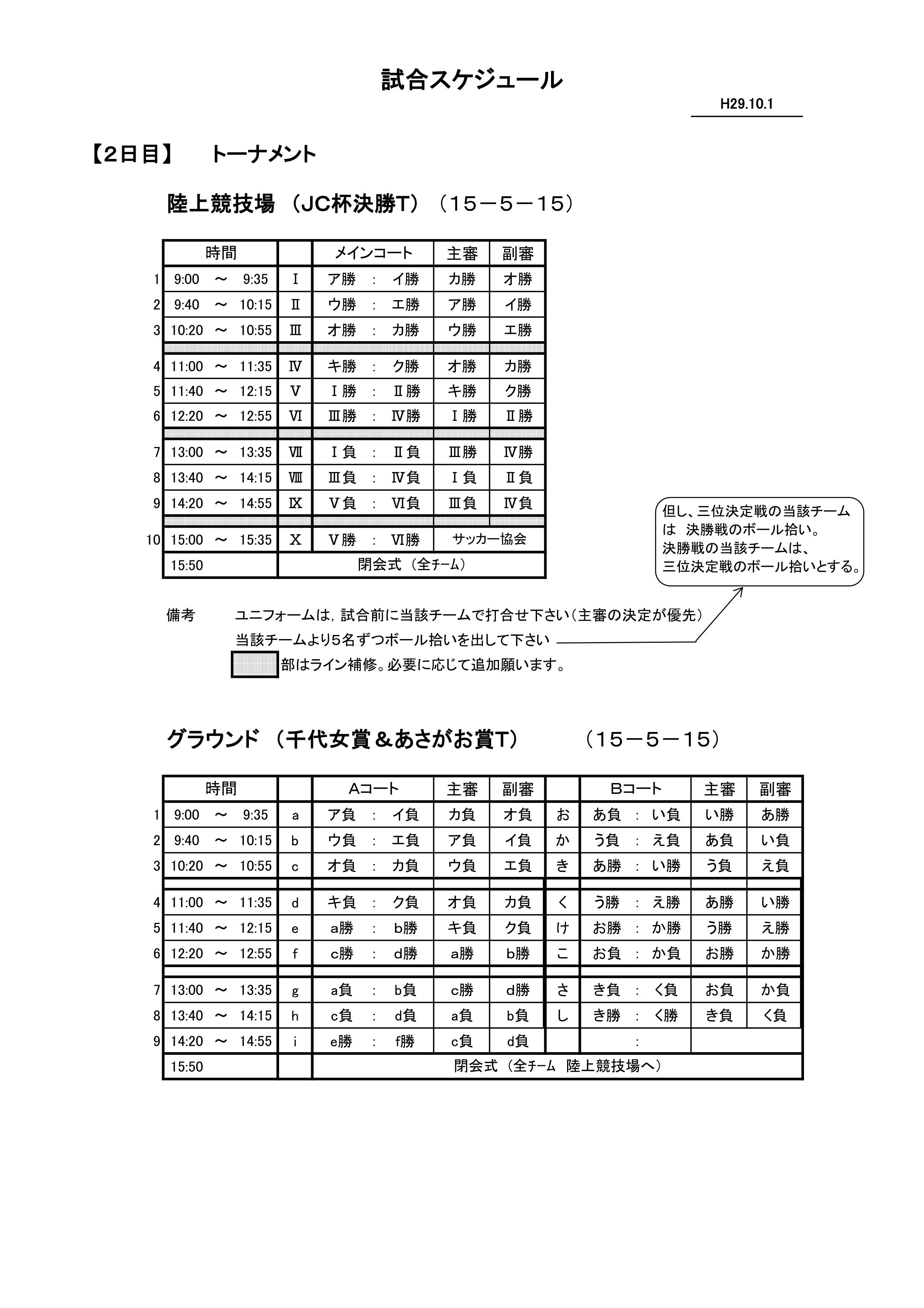 試合スケジュール 2日目