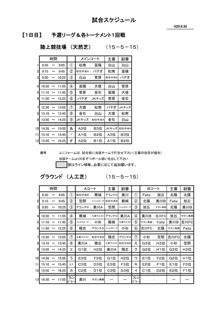 試合スケジュール 1日目