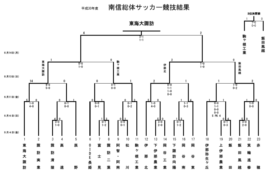 優勝:東海大諏訪 準優勝:伊那北 第3位:駒ヶ根工業 第4位:飯田風越