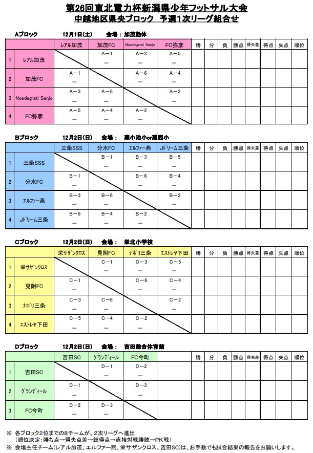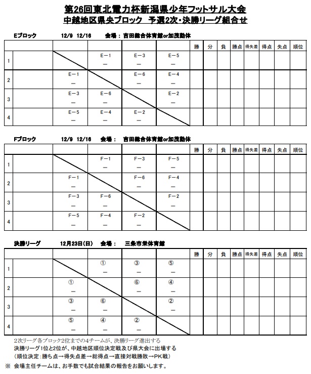 順位決定戦1位と2位のチームは、平成30年1月5日(土)に堀内体育館で行われる中越地区順位決定戦及び1月19日(土)・20日(日)に五泉市総合会館大ホールで行われる県大会に進出する。