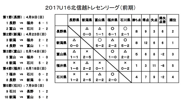 ①得失点 ②総得点 ③当該チームの勝敗 ④2016北信越U15トレセンリーグの順位