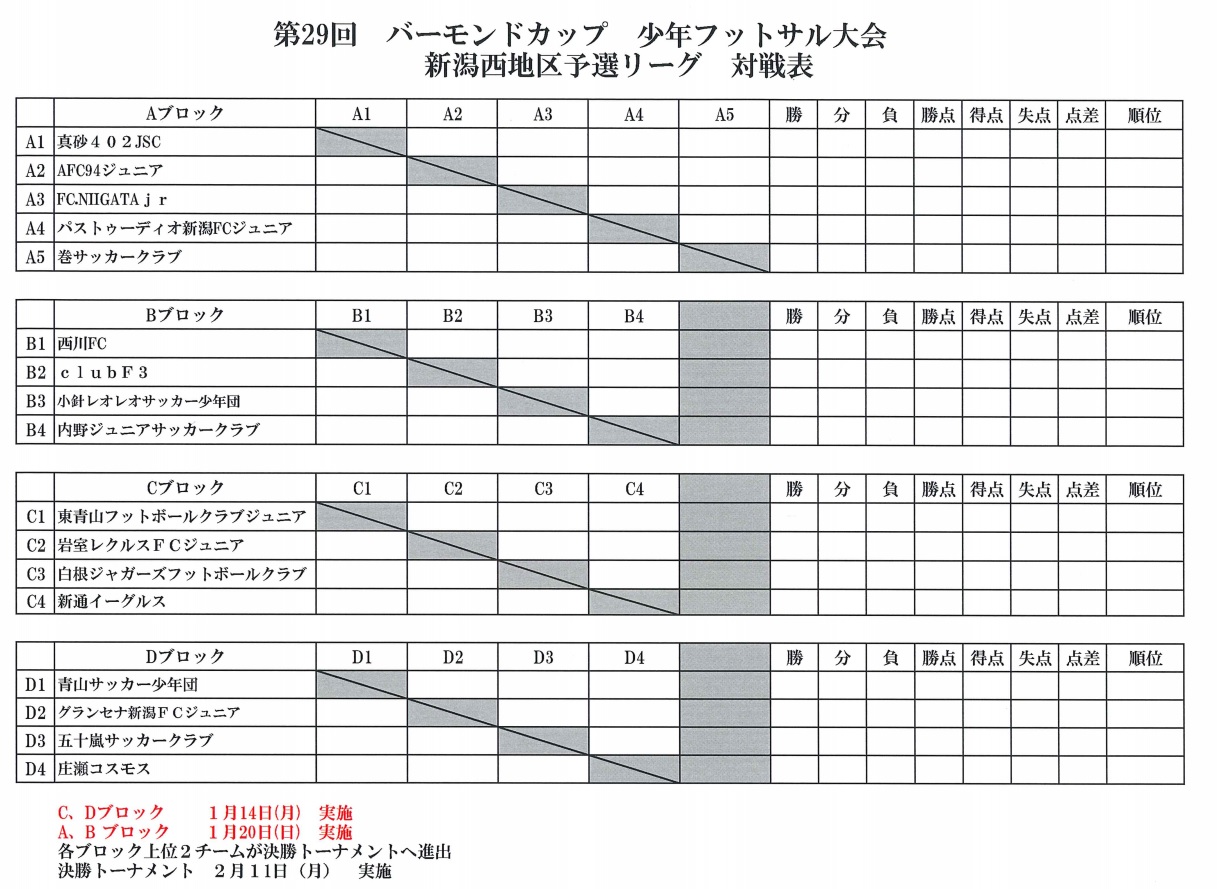 ④抽選後に参加不可能となった場合は不戦敗とし、スコアは不戦勝チーム3点、不戦敗チーム0点とする。