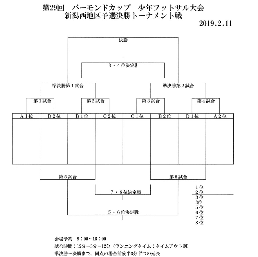 ②順位決定トーナメントで、第1位、第2位のチームが県大会の参加資格を得る。