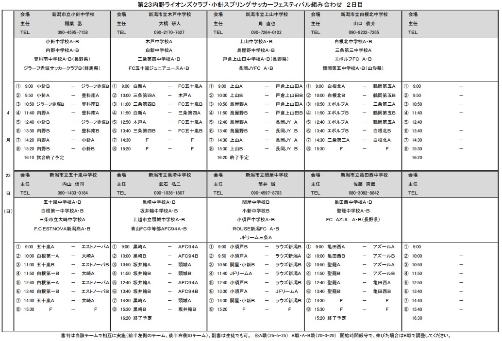 ・主催者の小針ライオンズクラブでは、エコキャップ運動を実施しています。ご家庭に使用済みのペットボトルのキャップがありましたら、4月21日(土)に選手に持たせてくださるよう、ご協力をお願いします。
