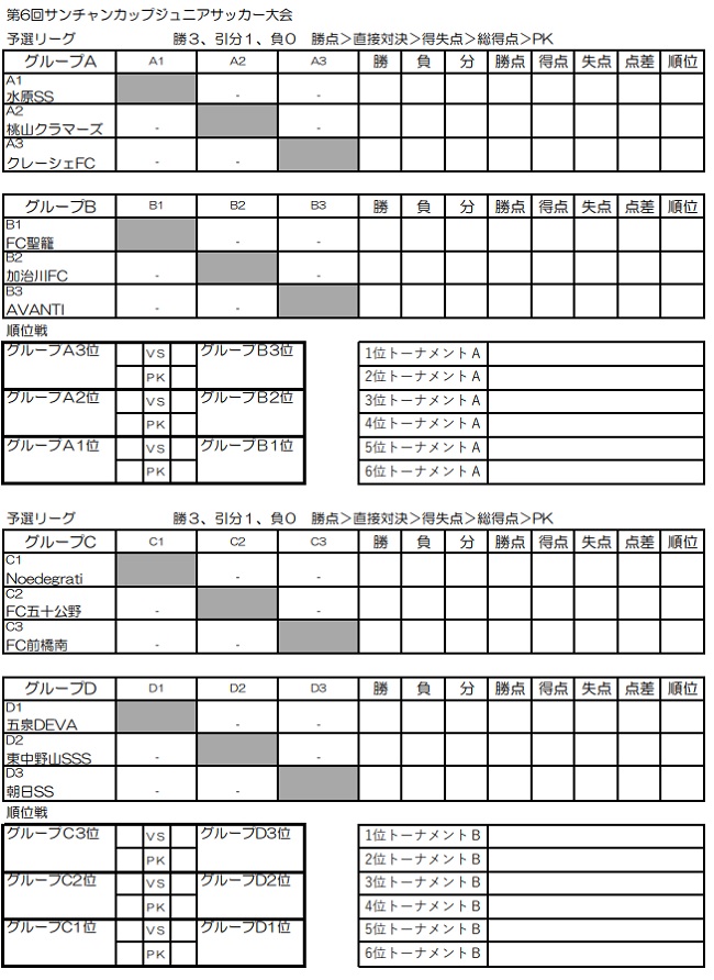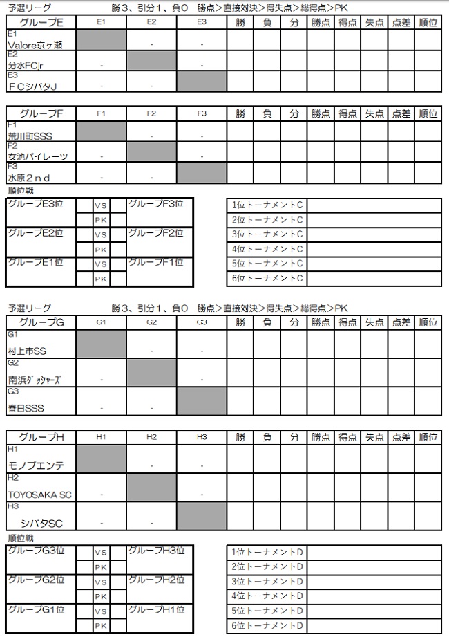 (3) 順位戦、トーナメント戦において勝敗が決しない場合はペナルティーキック方式(3人)で勝敗を決定する。