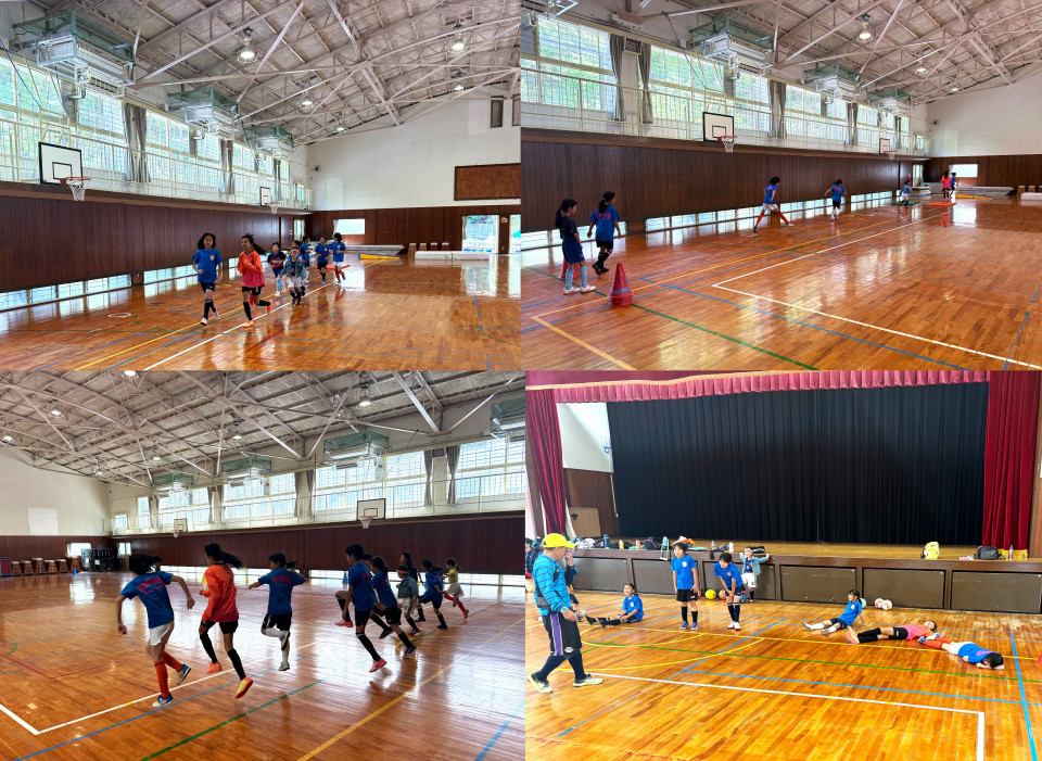 まずは、ウォーミングアップをしてからアジリティートレーニングをして、ドリブル・パス・トラップと体育館はボールコントロールもしやすいので、基礎を徹底的に練習しました????✨