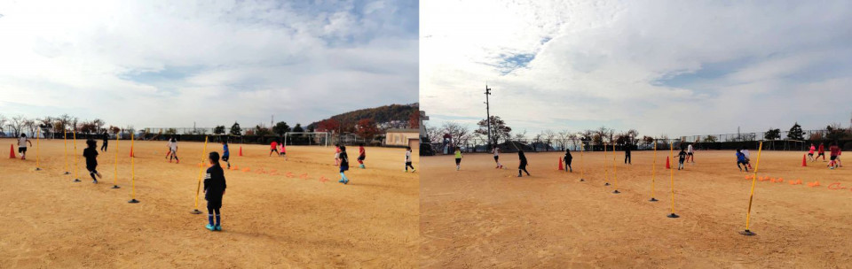 リフティングをして、対面パス、ロングキックと近・中・遠でボールを蹴る感覚を体にしみ込ませました。