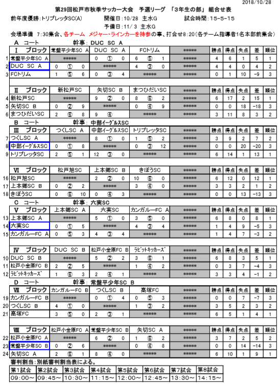予選リーグ 2018年10月28日(日) 主水G 予備日11月3日(土)