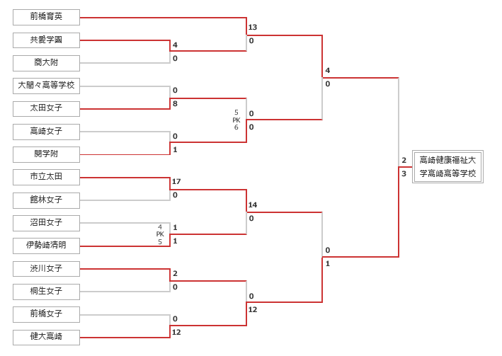 優勝:高崎健康福祉大学高崎高等学校 準優勝:前橋育英 第3位:市立太田 第3位:関学附