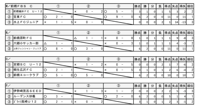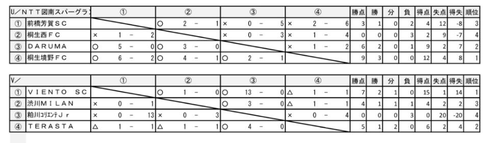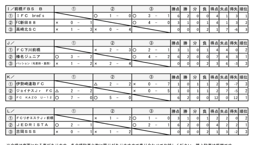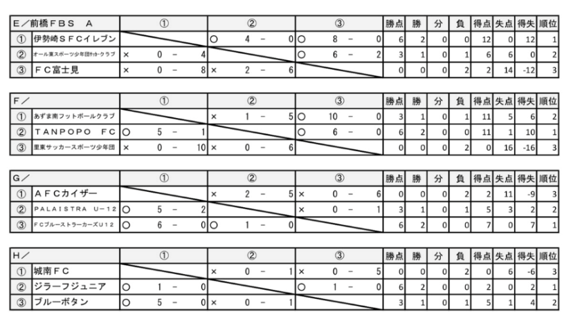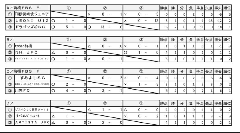 優 勝:ドラゴンズ柏SC準優勝:前橋エコークラブ3位:ARTISTA JFC3位:伊勢崎SFCイレブン