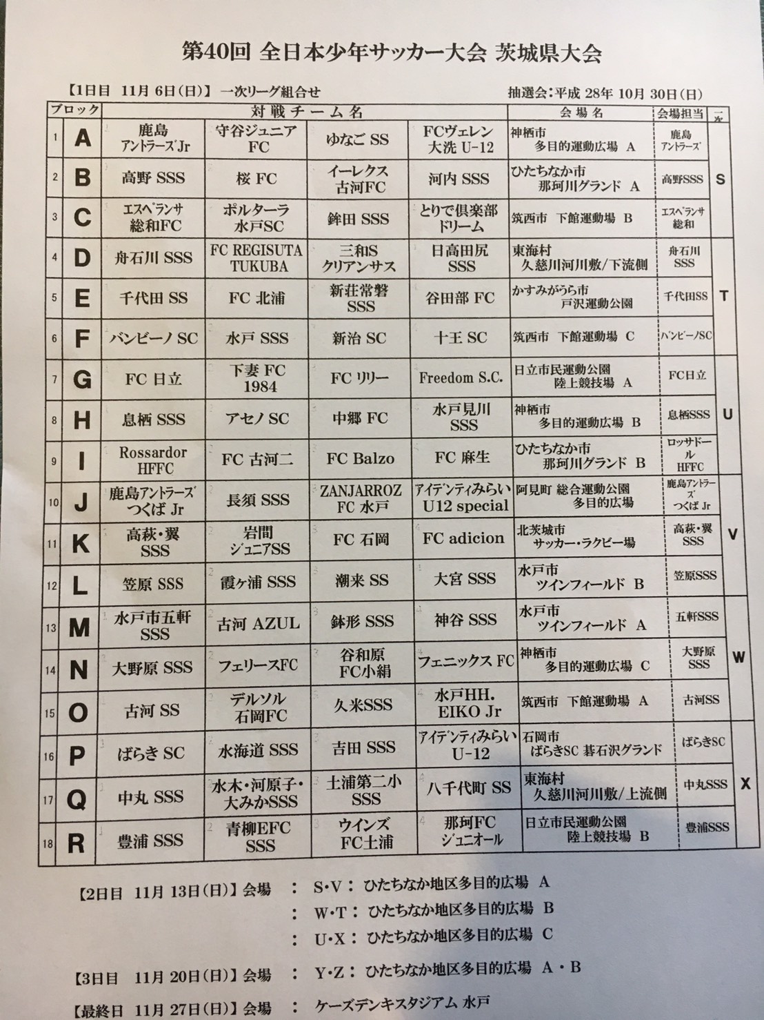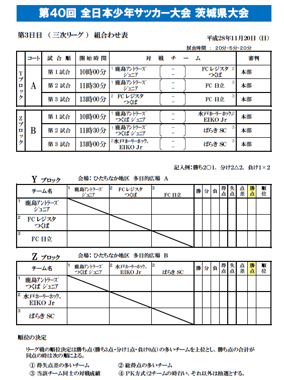 11月27日(日) 決勝リーグ ケーズデンキスタジアム水戸予定