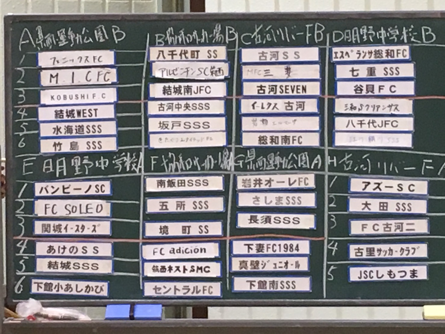 ■1次予選1位(県大会出場決定!おめでとう!) Aブロック:フェニックス Bブロック:八千代町SSS Cブロック:古河SS Dブロック:エスペランサ総和 Eブロック:バンビーノSC Fブロック:FC adicion Gブロック:下妻1984 Hブロック:アズー古河SC