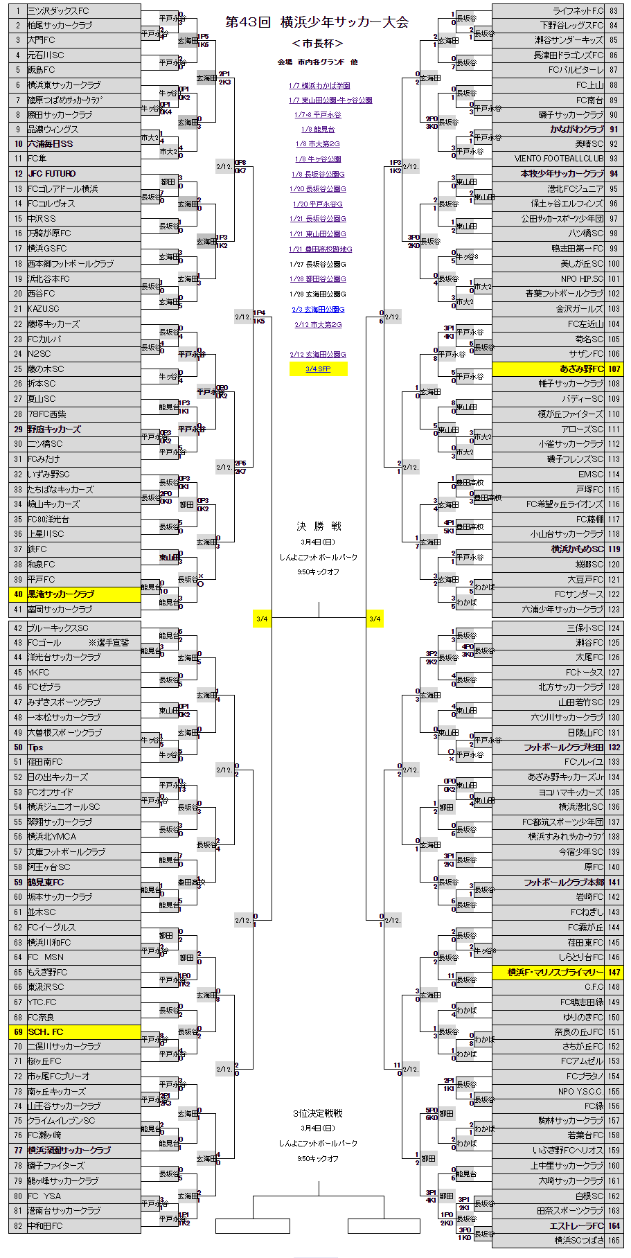六浦毎日SS、黒滝SC、鶴見東FC、SCH.FC、かながわクラブ、あざみ野FC、FC本郷、横浜F・マリノスプライマリー