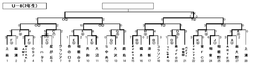 ・同点の場合はPK戦(3本)とする。決勝戦で同点の場合は、10分間の延長を1回行い、なお同点の時はPK戦とする。