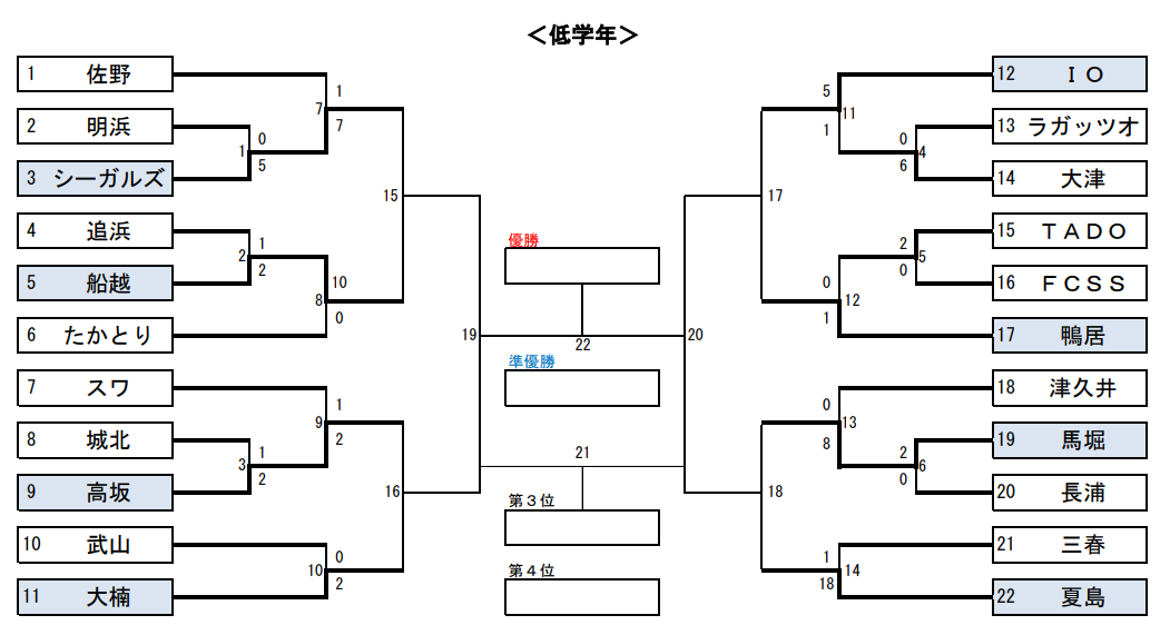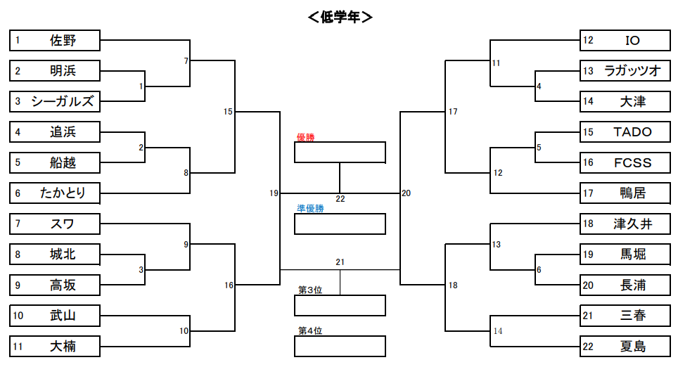 高学年:26チーム、中学年:26チーム、低学年:21チームが出場します。