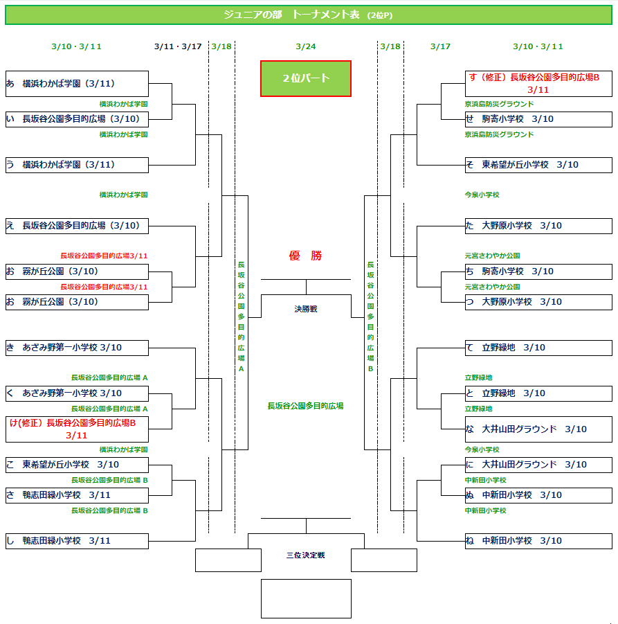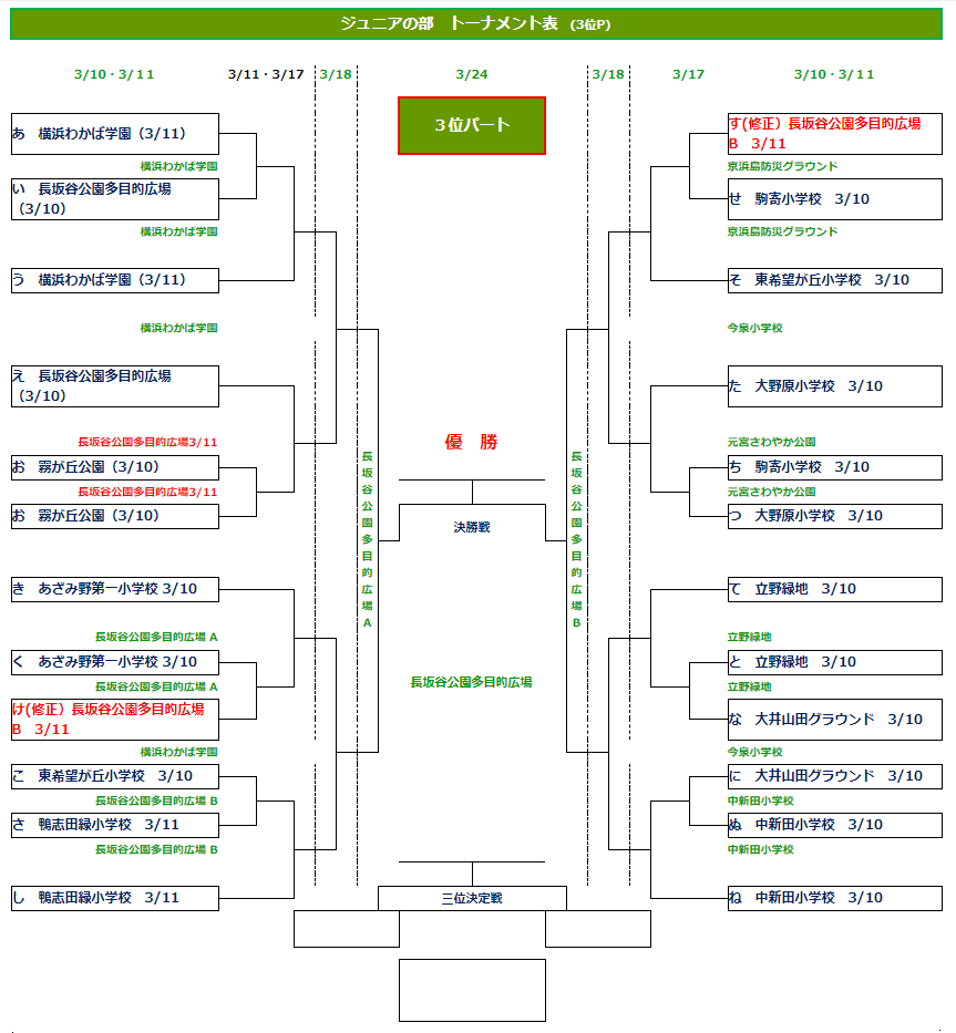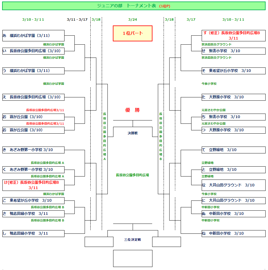 ・3チームブロックの予選後、1位2位3位の各パート別トーナメント戦実施。