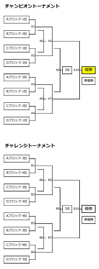 16チームが参加して、4ブロック(A~D)に分かれて予選リーグを行い、予選の順位によりチャンピオントーナメント(上位パート)とチャレンジトーナメント(下位パート)に分かれてトーナメント戦を行う。