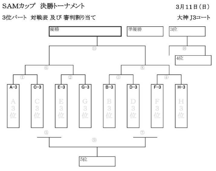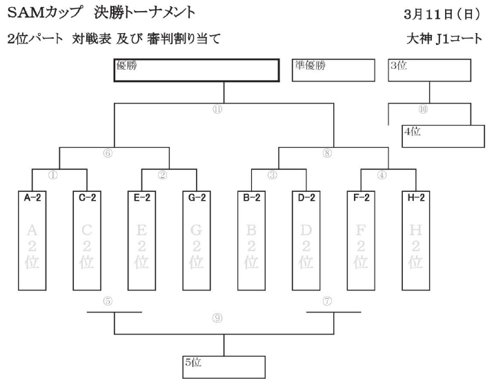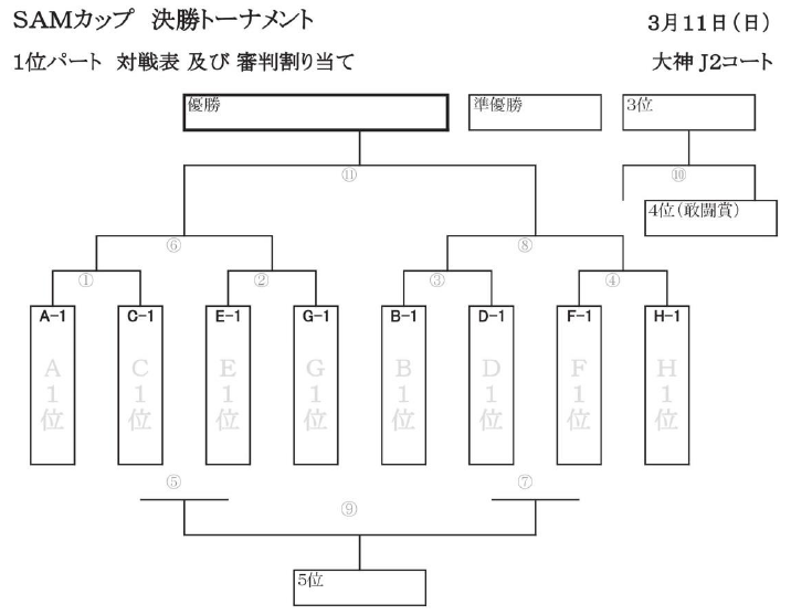 ・トーナメントで同点の場合は、PK戦により勝者を決定する(SAM・PK戦要項参照)。