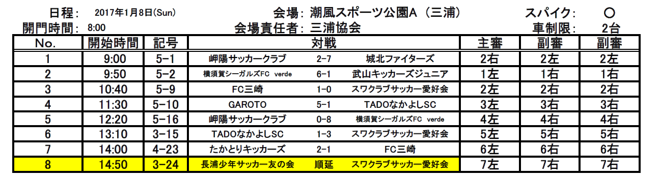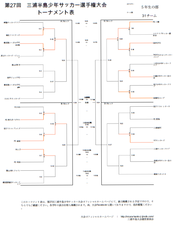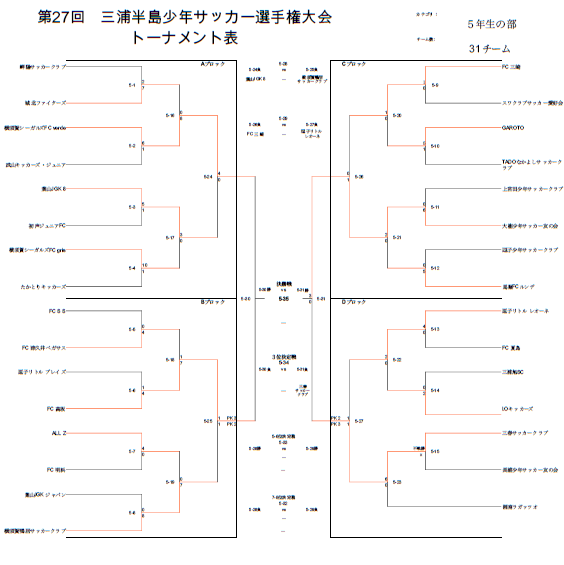 ★下記対戦表の見方・・・記号欄の「5-■」という試合が5年生の試合です。