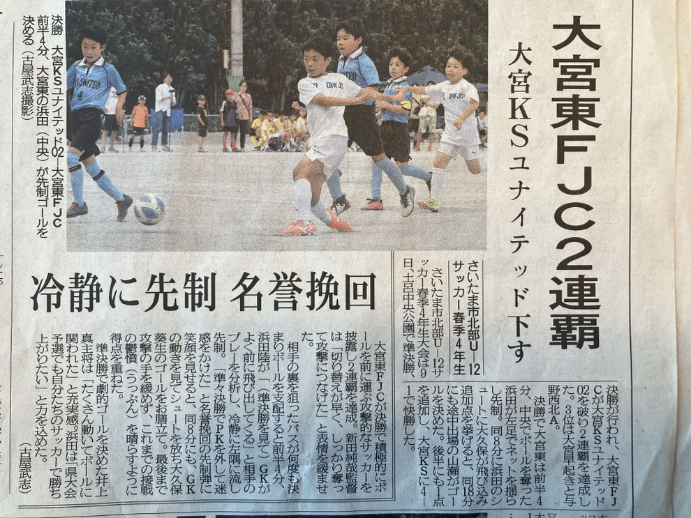 さいたま市北部少年サッカー春季4年生大会 埼玉新聞 2024年6月14日付記事のご紹介