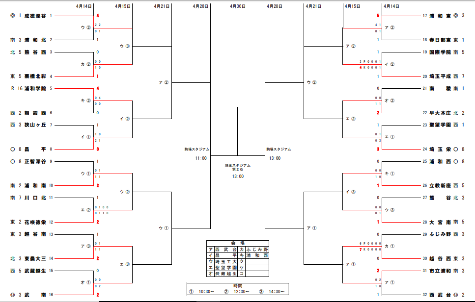 ★ベスト4の2チームは、学校総体兼高校総体埼玉県予選の2回戦より出場