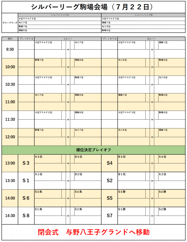 (4) 各ブロック6位の成績が悪かった2チームと、7位~8位の合計8チームがシルバーリーグ(下位)に進出。
