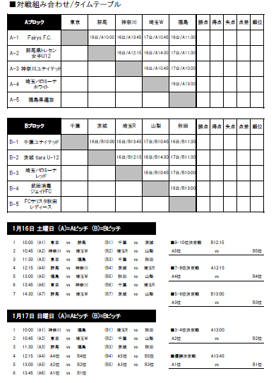 【2015年度組み合わせ表/タイムテーブル】 (参照サイト:関東少女サッカーサイト)