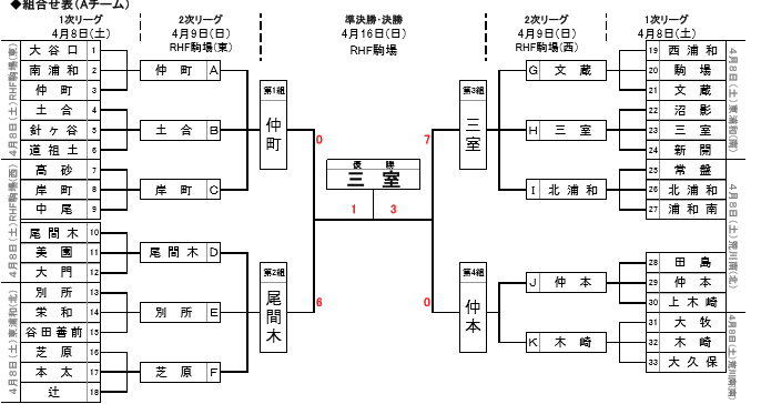 1次リーグ各会場 2次リーグ 東浦和北・南 準決勝決勝 RHF駒場