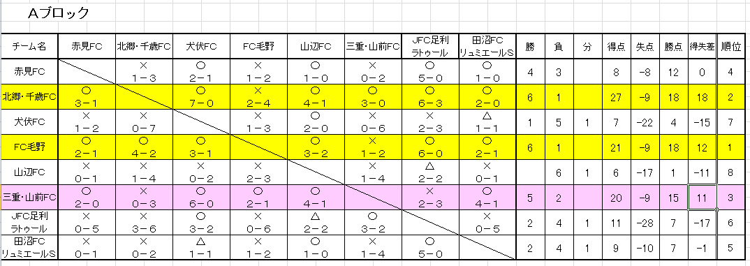 ・A、MINAMI FC ・北郷・千歳 ・FC毛野 ・坂西ジュニオール ・三重・前山FC