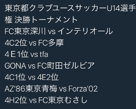 15:15 FC東京U-15深川 4-4(PK4-5) FC多摩