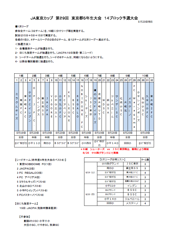 前年度、14B4年生大会の上位8チームはリーグ戦の組合せシードとする。
