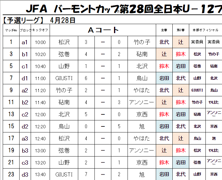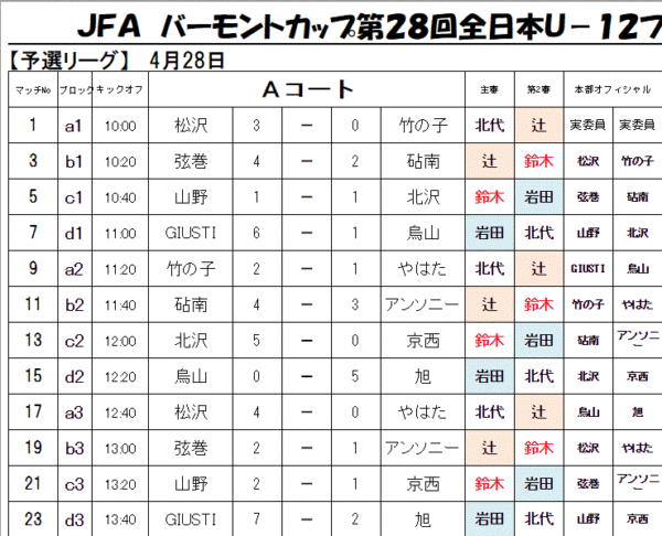 2018年4月28日(土)10時30頃~19時 1次ラウンド予選リーグ