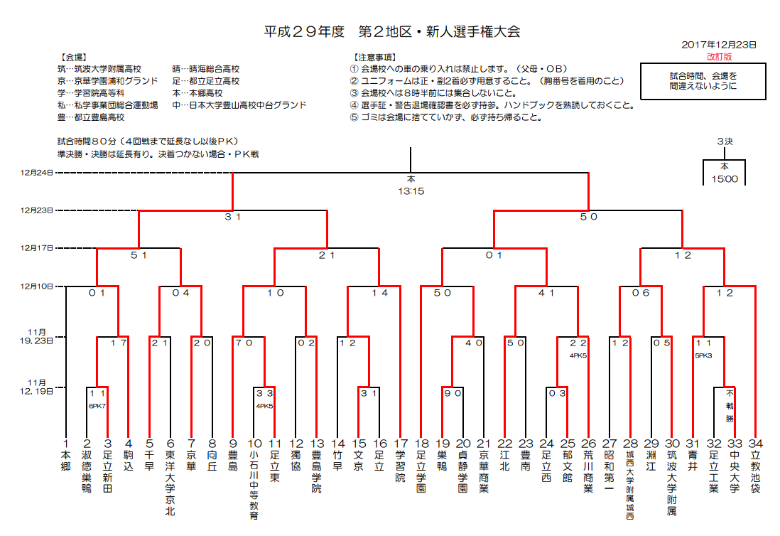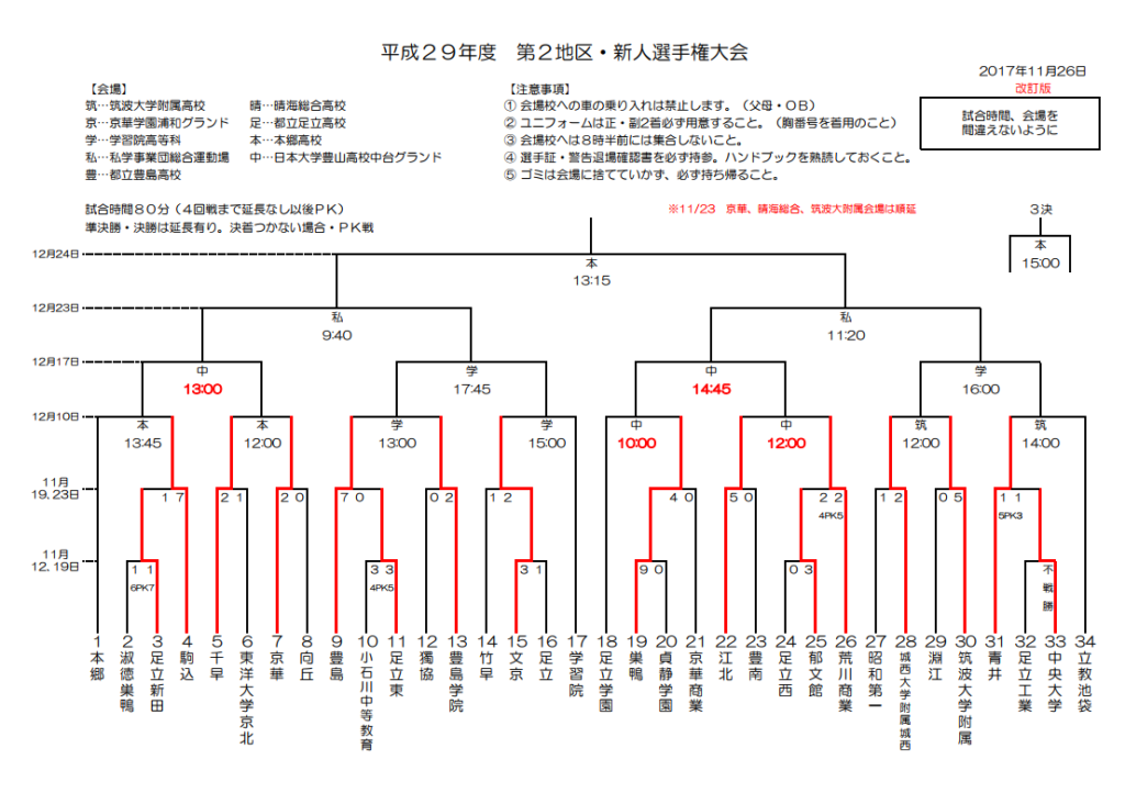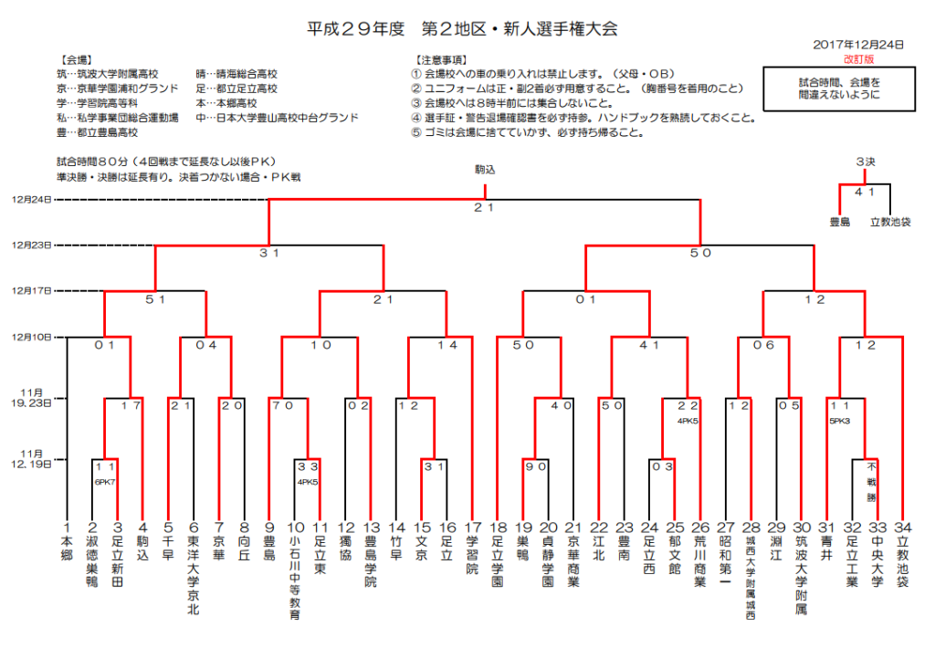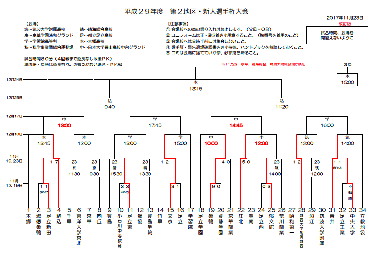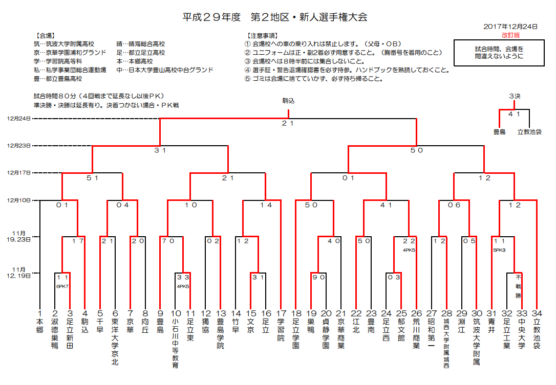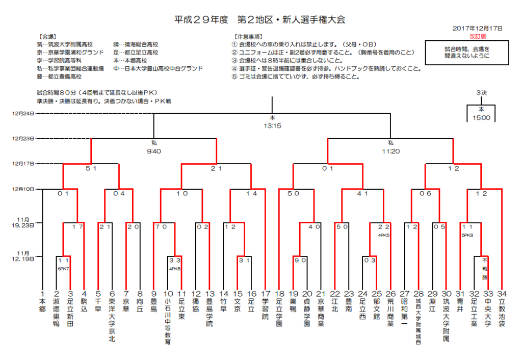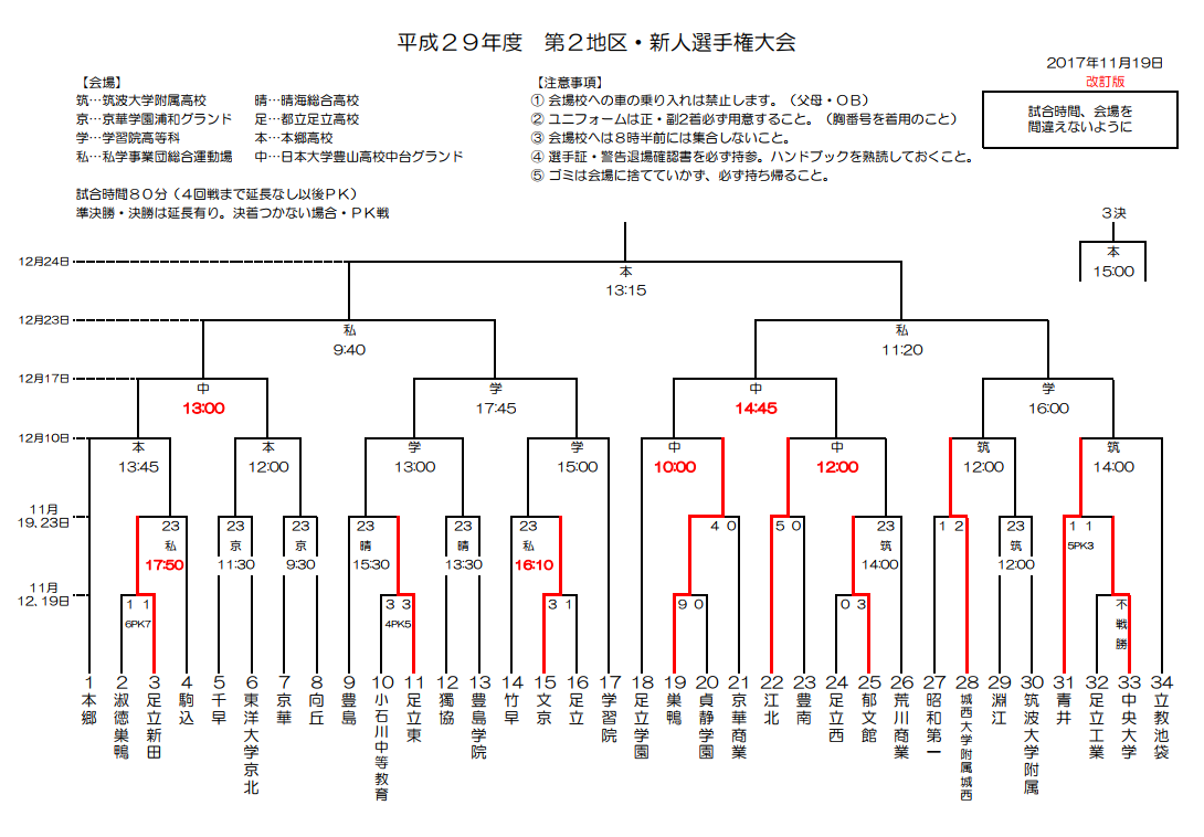 この16校に加え各地区の優勝、準優勝校が来春の関東大会予選に進出