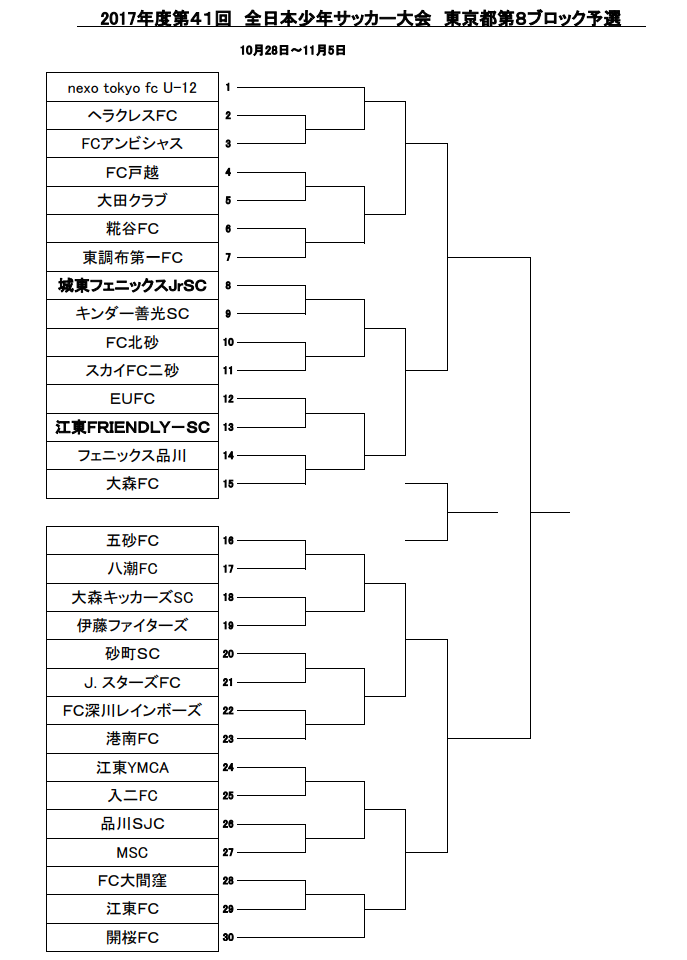 11 本大会の準決勝に進出した4チームは、2017年11月12日から開始される東京都中央大会に出場する義務と権利を有する。但し、出場する為には第 8 ブロック役員会の推薦が必要である。