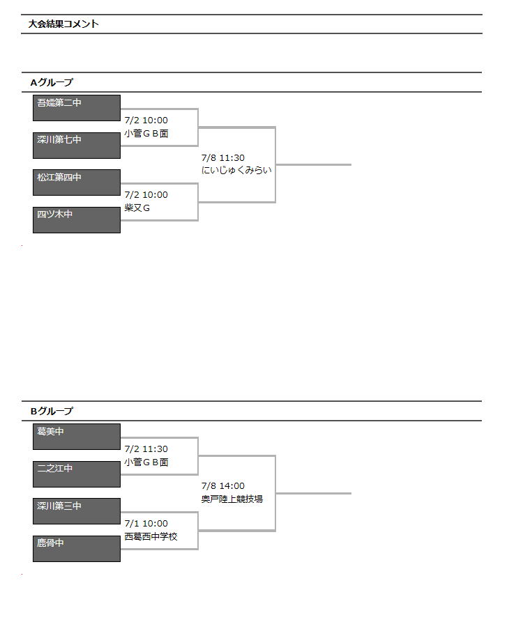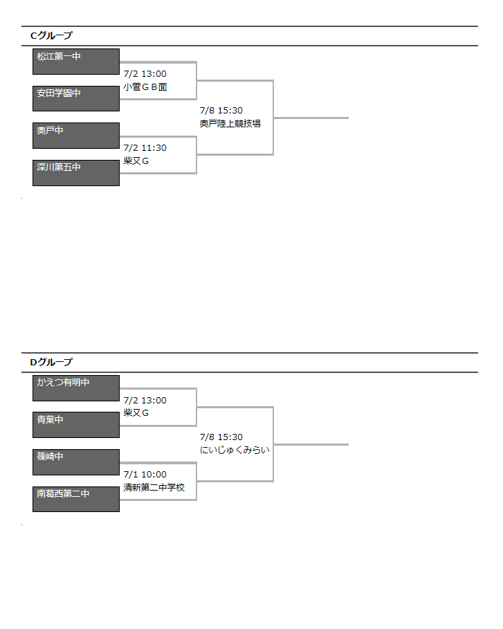 小菅G、柴又G,西葛西中学校、清新第二中学校、奥戸陸上G、にいじゅくみらいG