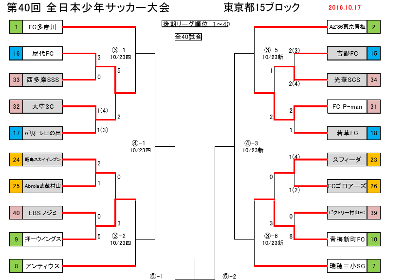 ★東京都U-12サッカー15ブロック後期リーグの順位をトーナメント表に反映させる。