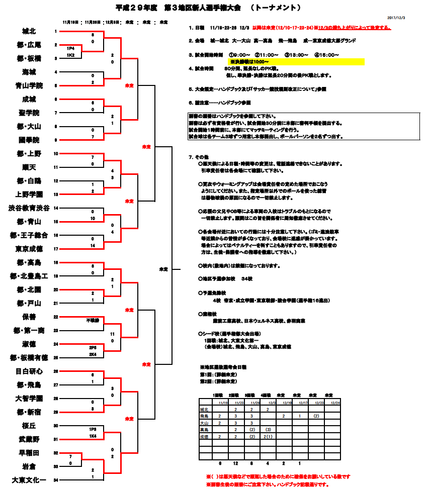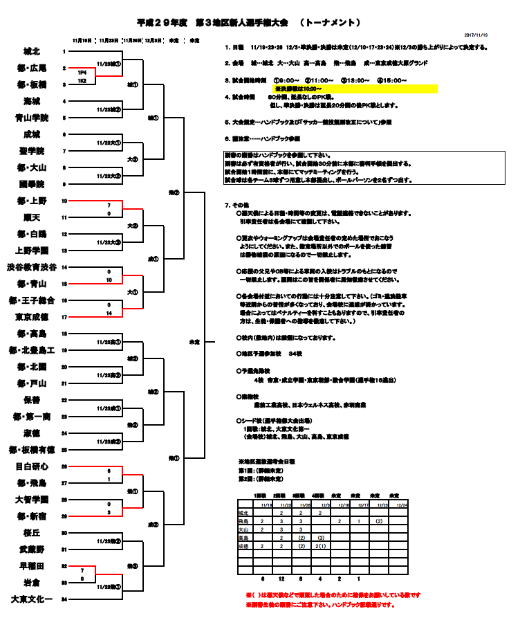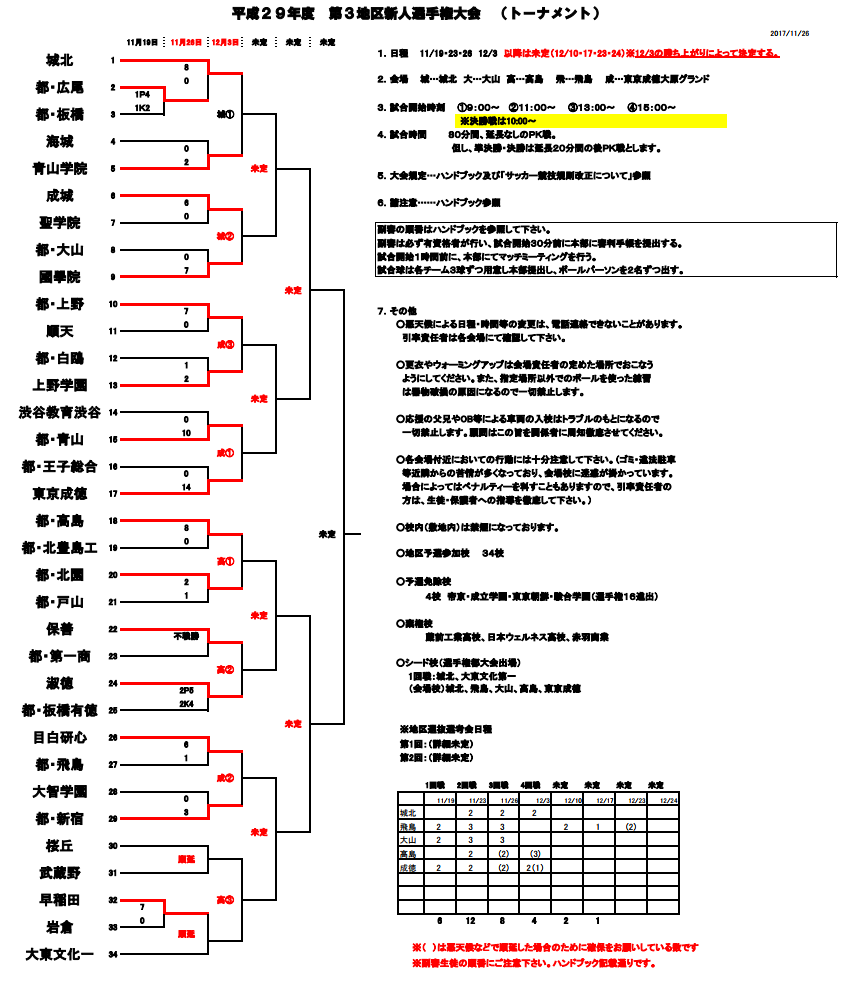 2017年11月19日(日)、23日(祝・木)、26日(日)、12月3日(日)、準決勝、決勝戦日程未定