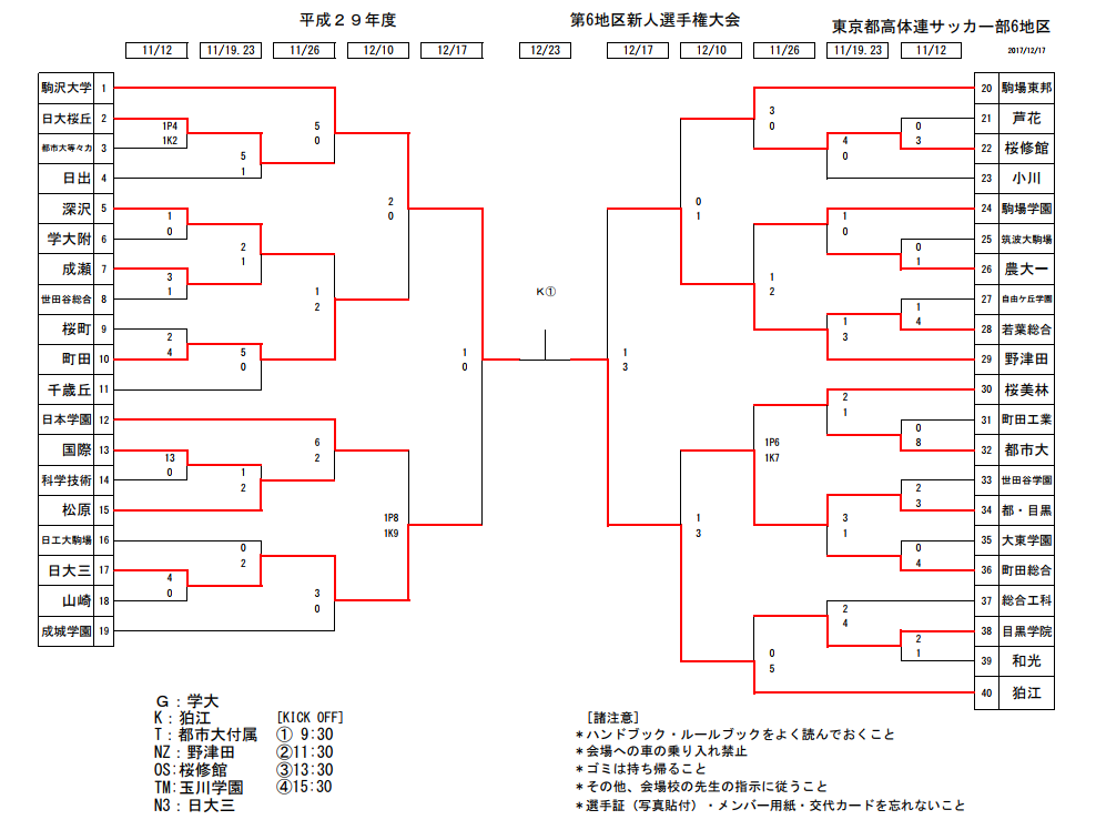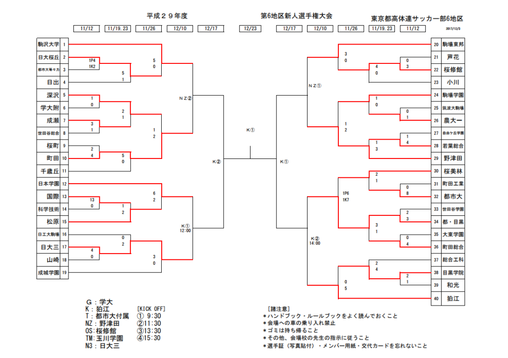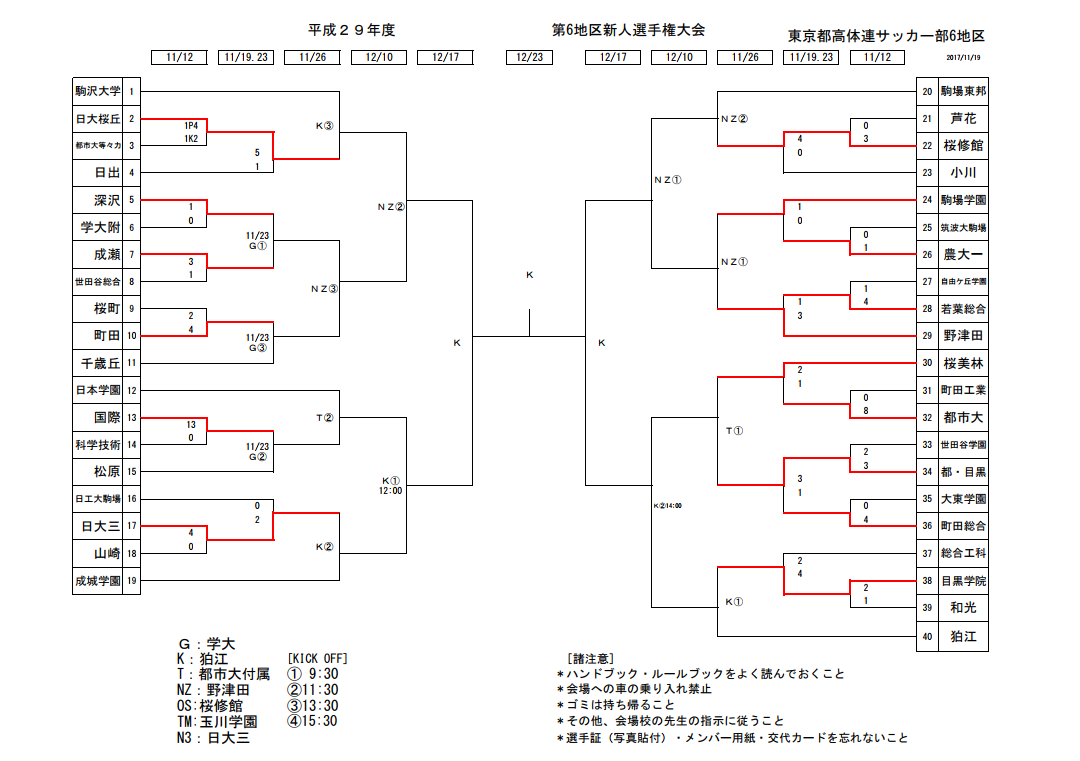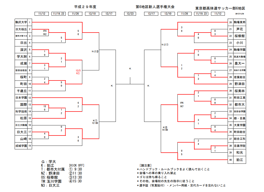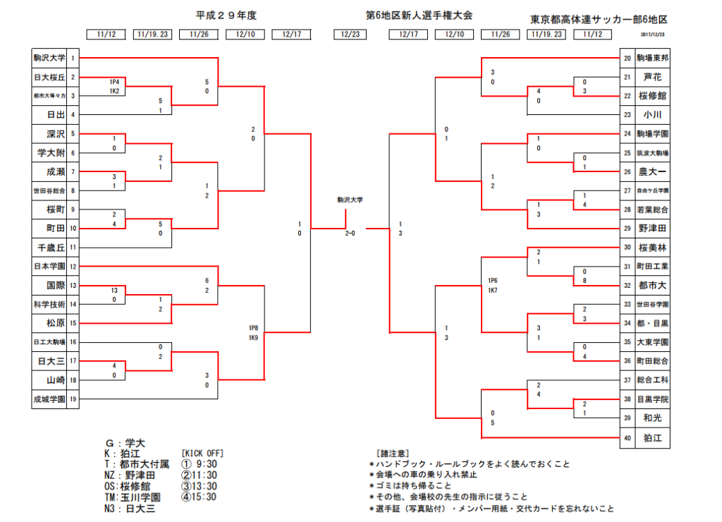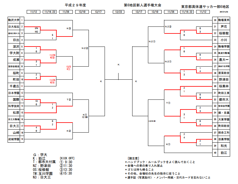 この16校に加え各地区の優勝、準優勝校が来春の関東大会予選に進出
