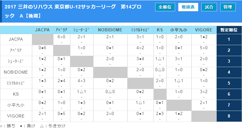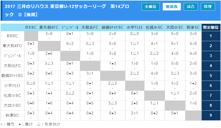 ③ 後期リーグ戦上位1位~4位の内1チームを14B委員長の推薦で、当該チームは東京都U-12サッカーリーグ2部参入戦への出場資格を得る。委員長の推薦基準は、14B運営への協力度、東京都U-12サッカーリーグ1部・2部の大会運営規則の運営等が出来ると認めたチームとする。