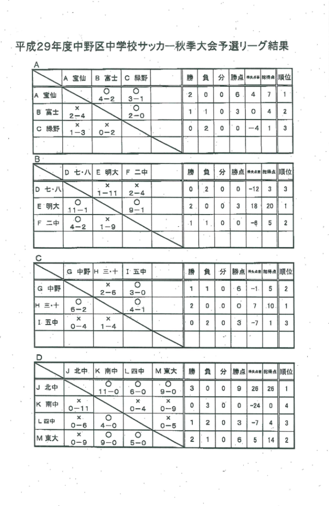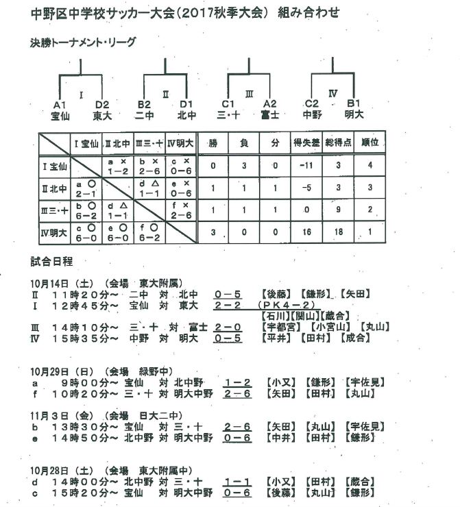 優 勝:明治大学付属中野中学校準優勝:第三中学校第3位:北中学校第4位:宝仙中学校