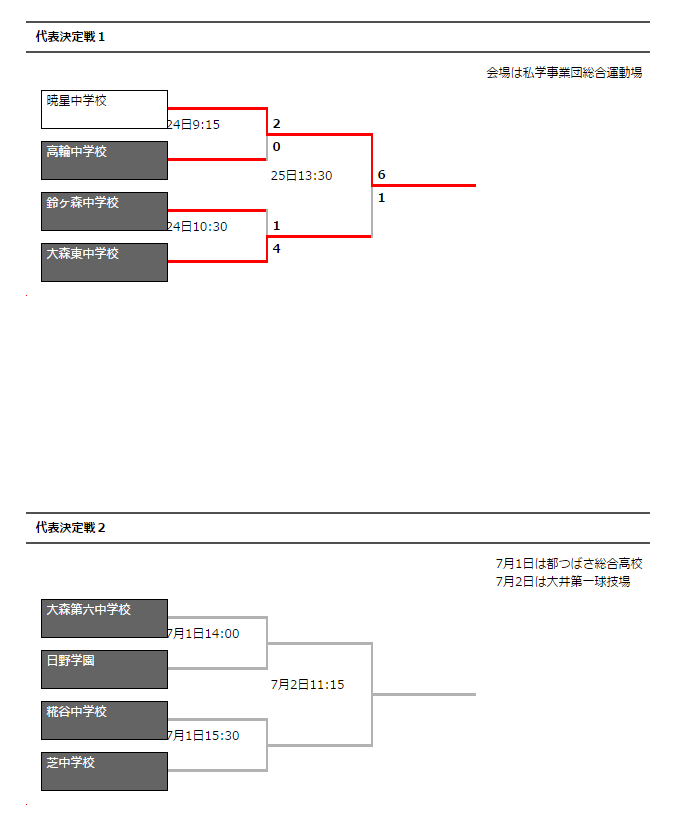 勝ち上がった4校が、第一支部の代表として都大会に出場します。