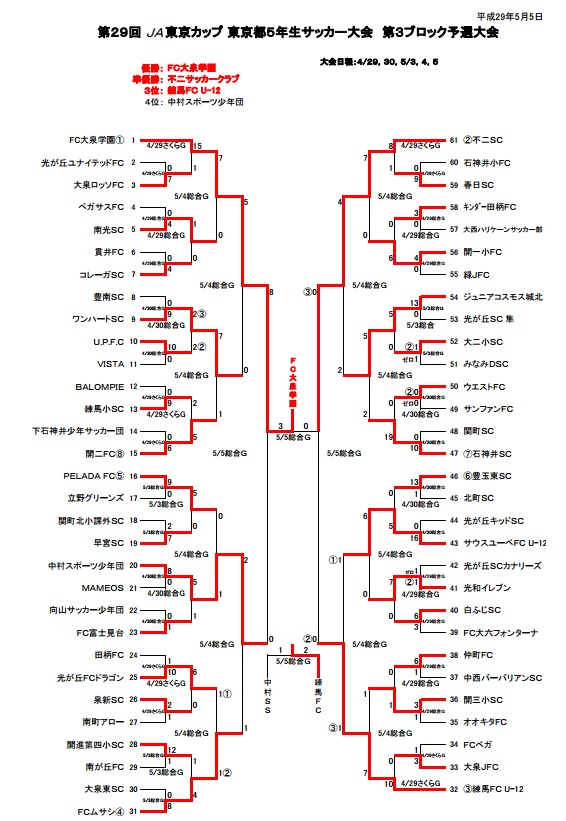優 勝:FC大泉学園準優勝:不二サッカークラブ第3位:練馬FC U-12